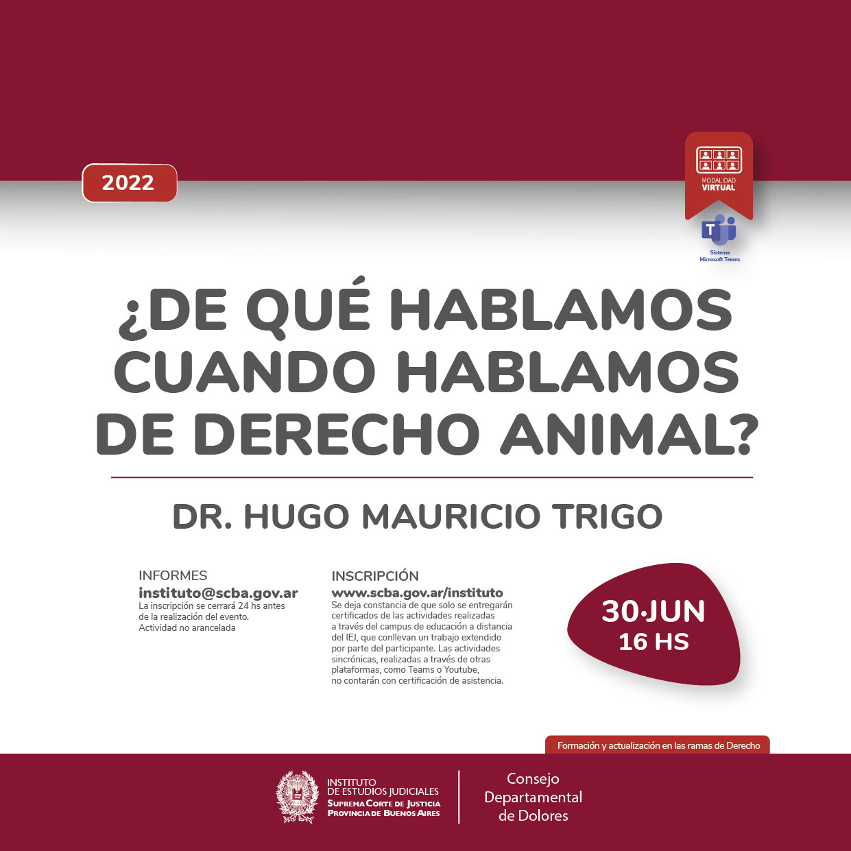 NOTA: La actividad será realizada bajo la modalidad virtual mediante el sistema Microsoft Teams, pudiendo ingresar a través del enlace publicado en el vinculo asociado.