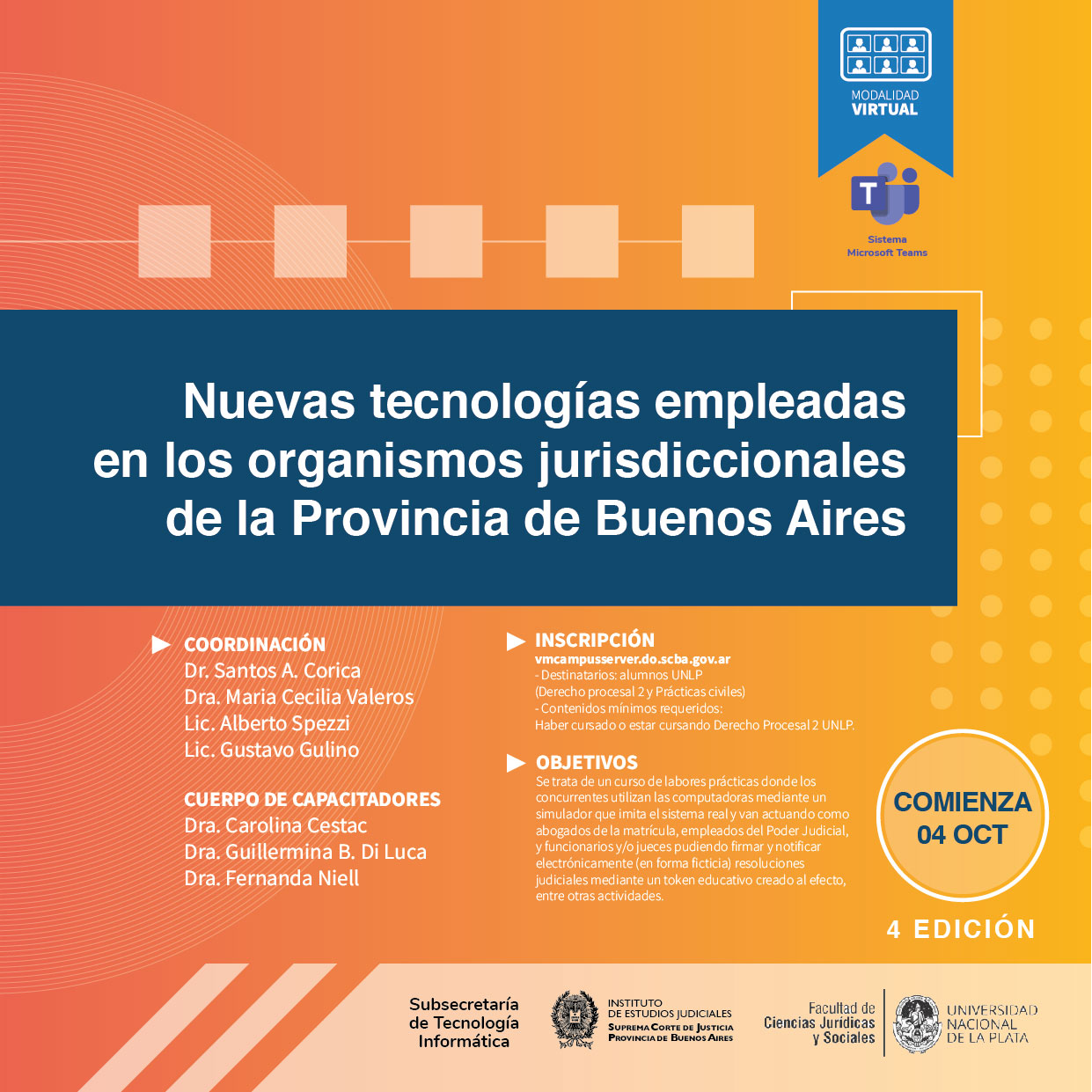 04-10-2021 | Nuevas tecnologías empleadas en los organismos jurisdiccionales de la Provincia de Buenos Aires ( a distancia )