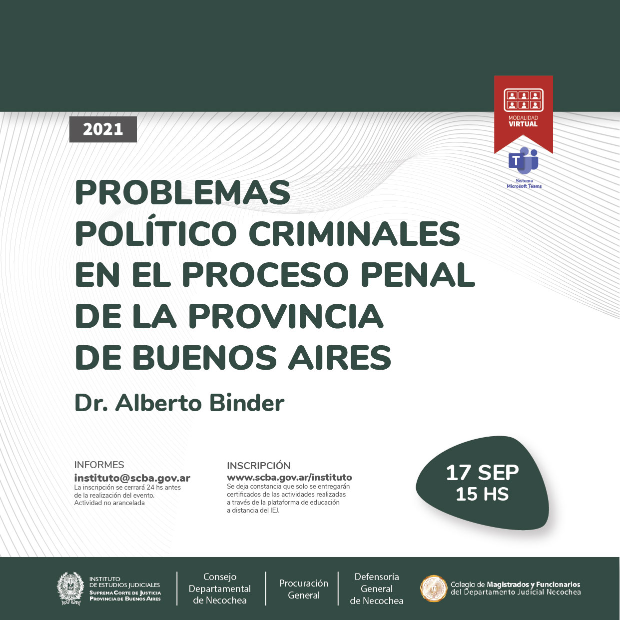 17-09-2021 | Problemas político criminales en el proceso penal de la Provincia de Buenos Aires ( a distancia )