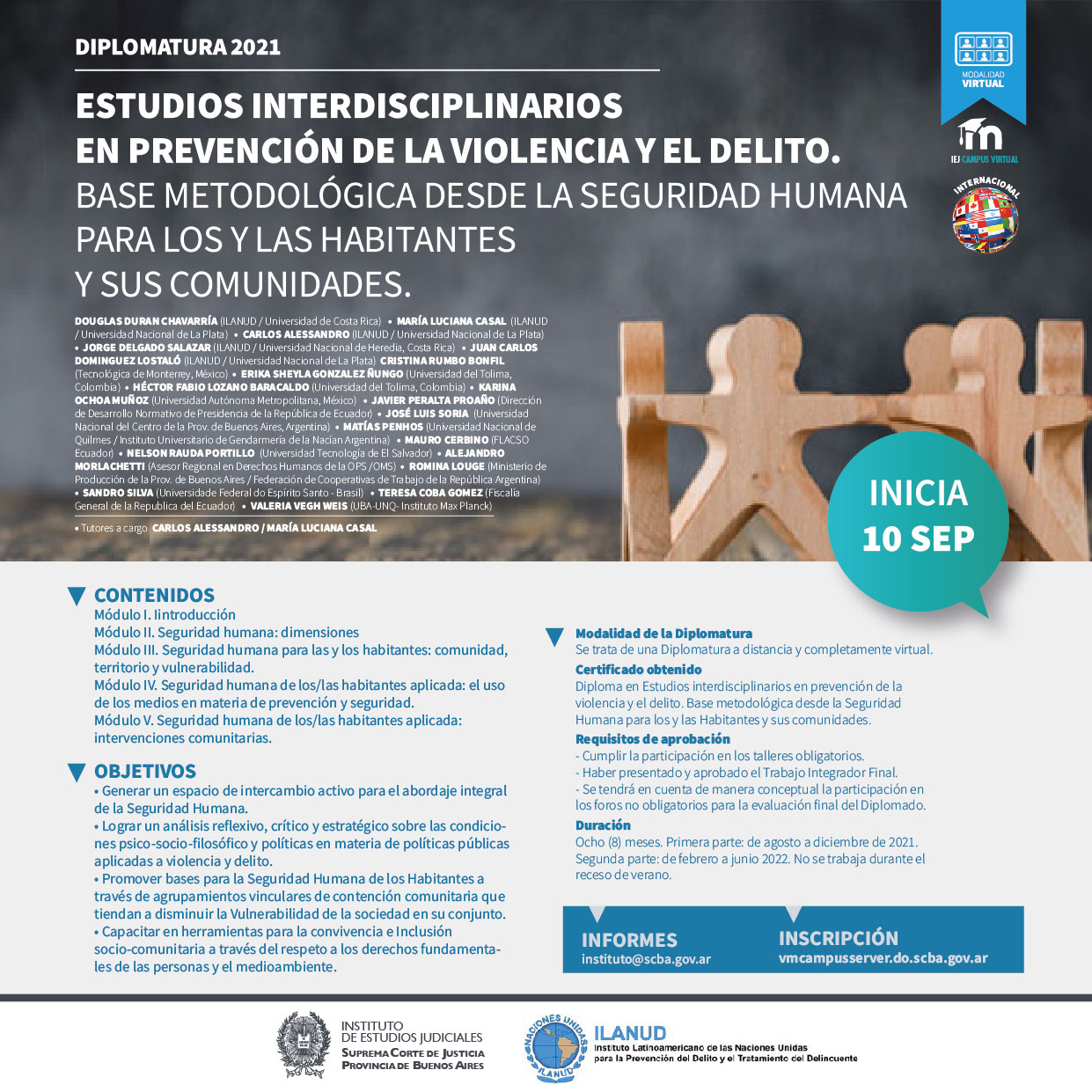10-09-2021 | DIPLOMATURA en Estudios interdisciplinarios en prevención de la violencia y el delito. Base metodológica desde la Seguridad Humana para los y las Habitantes y sus comunidades (a distancia)