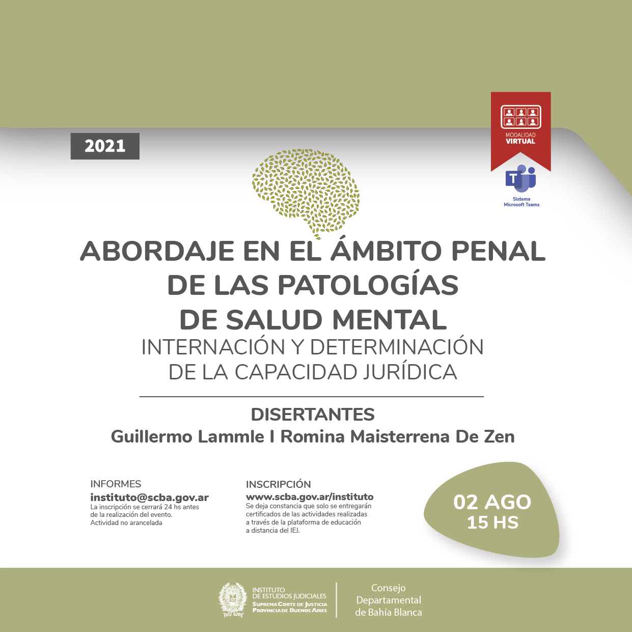 02-08-2021 | Abordaje en el ámbito penal de las patologías de salud mental. Internación y determinación de la capacidad jurídica ( a distancia )