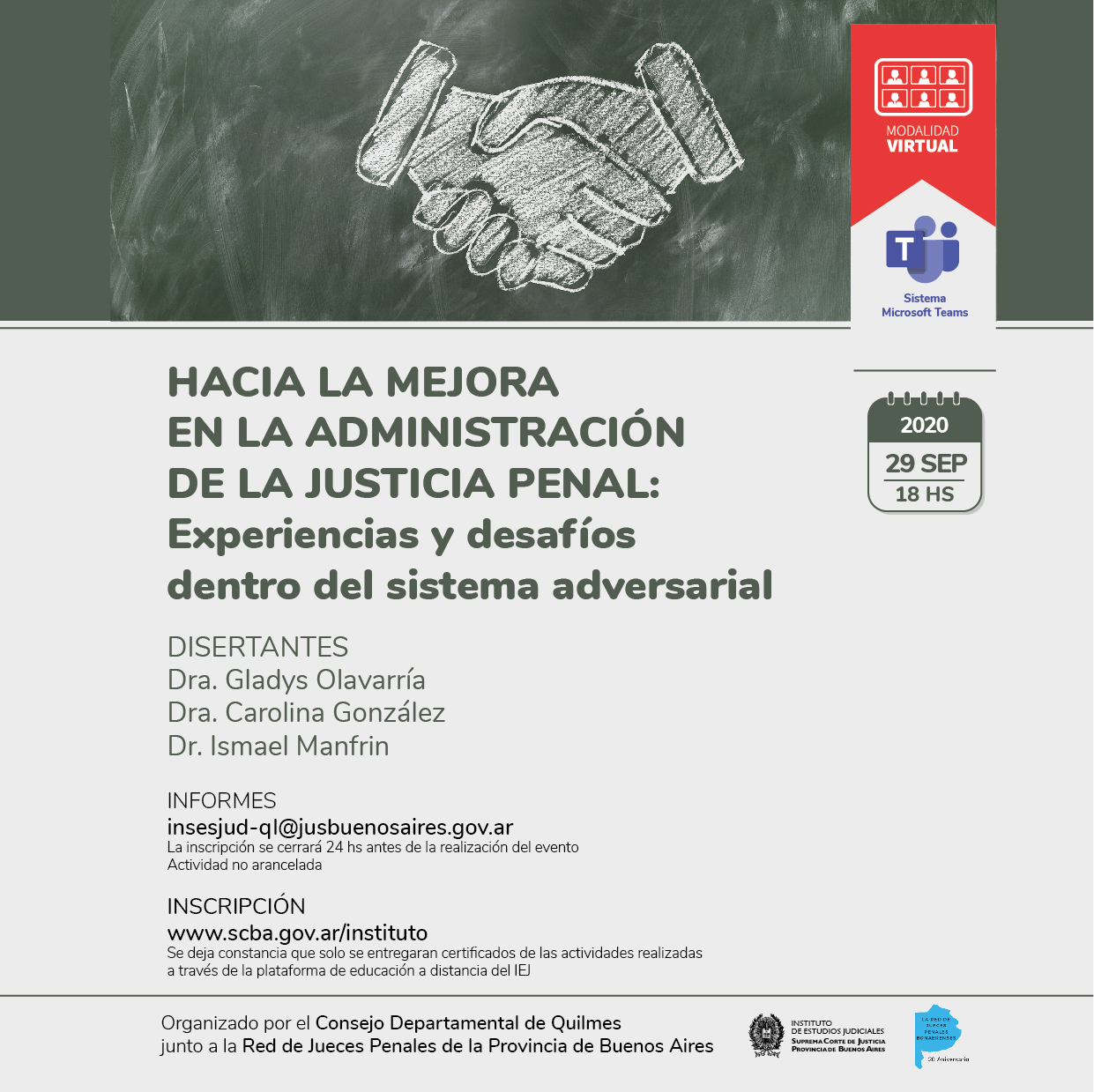 29-09-2020 | QUILMES - Hacia la mejora en la administración de la Justicia Penal: Experiencias y desafíos dentro del sistema adversarial