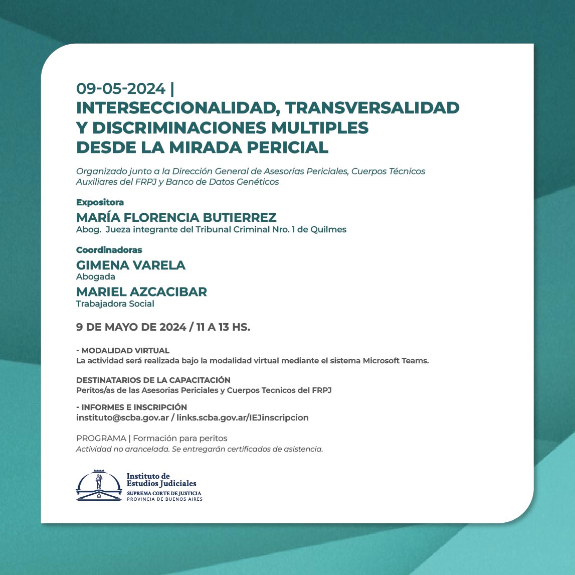 09-05-2024 | INTERSECCIONALIDAD, TRANSVERSALIDAD Y DISCRIMINACIONES MULTIPLES DESDE LA MIRADA PERICIAL ( a distancia )