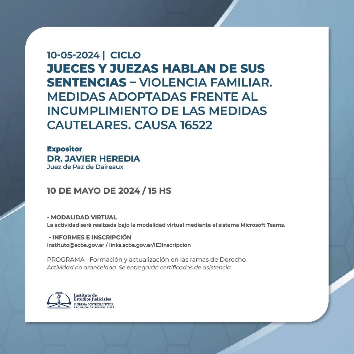 10-05-2024 | Ciclo: Jueces y juezas hablan de sus sentencias – Violencia Familiar. Medidas adoptadas frente al incumplimiento de las medidas cautelares. Causa 16522 ( a distancia )
