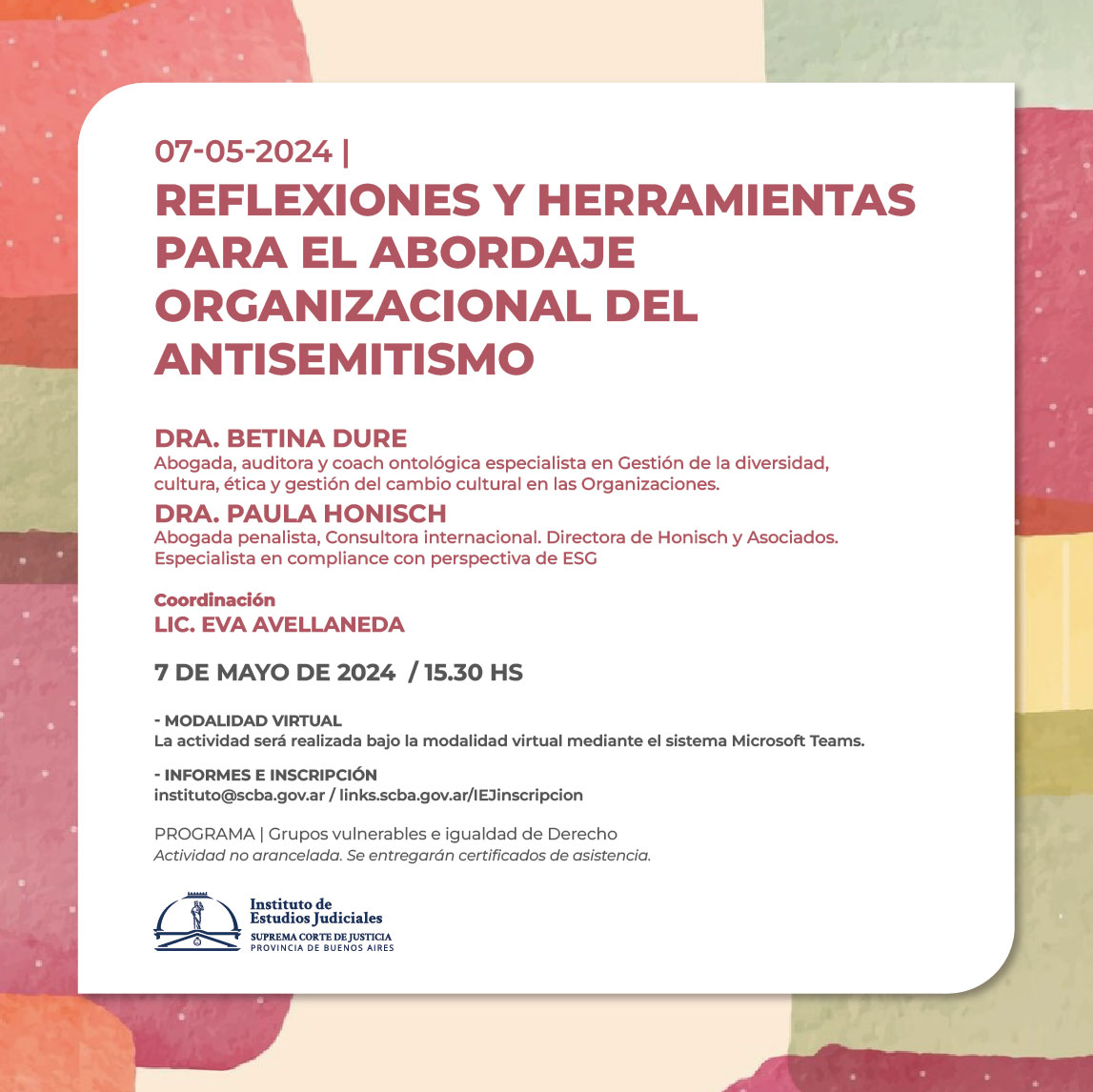 07-05-2024 | Reflexiones y herramientas para el abordaje organizacional del antisemitismo ( a distancia )
