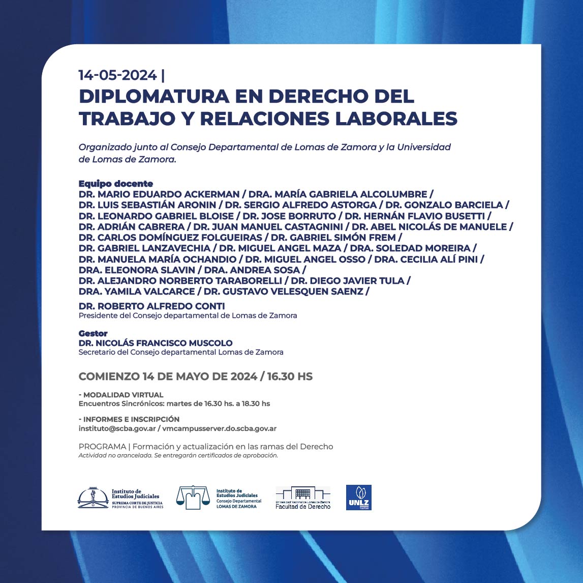 14-05-2024 | DIPLOMATURA EN DERECHO DEL TRABAJO Y RELACIONES LABORALES ( a distancia )