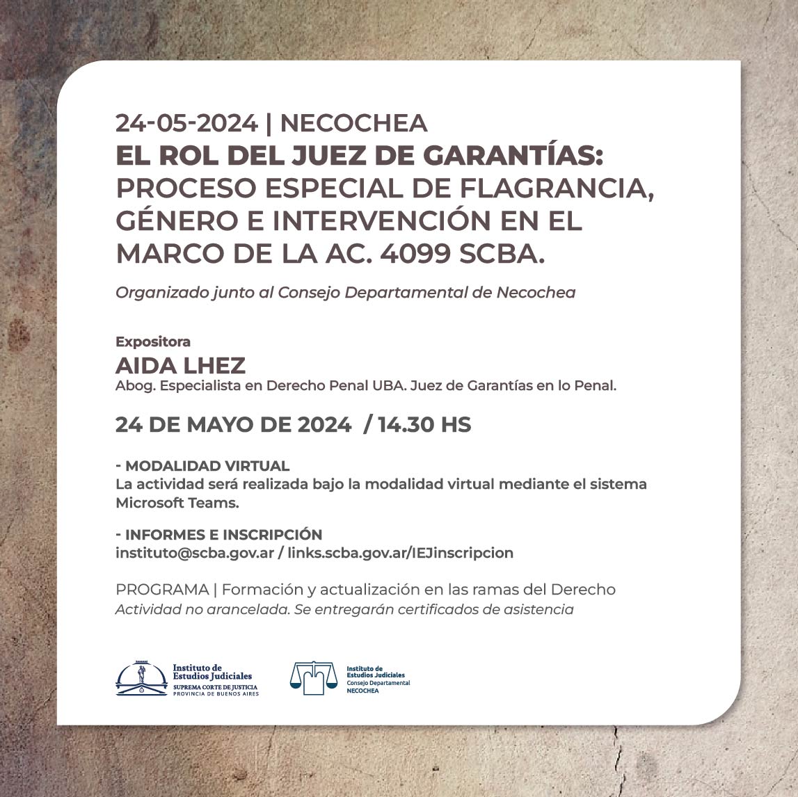 24-05-2024 | El rol del Juez de Garantías: proceso especial de flagrancia, género e intervención en el marco de la Ac. 4099 SCBA. ( a distancia )