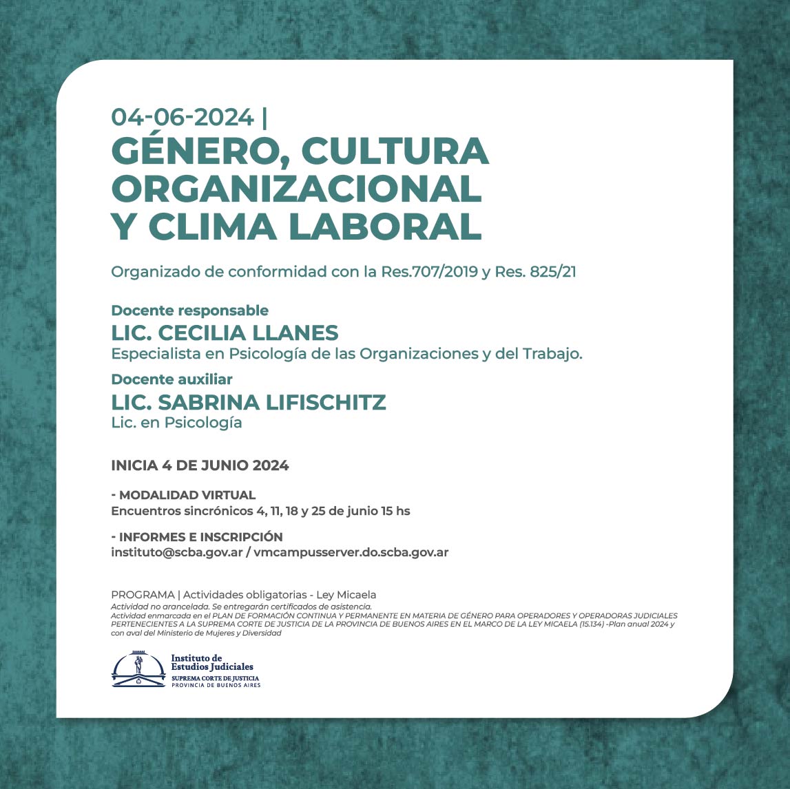 04-06-2024 | Género cultura organizacional y clima laboral ( a distancia )