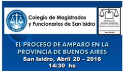 Con fecha 20 de abril de 2016, la Suprema Corte de Justicia declaró de su interés la jornada 'El proceso de amparo en la Provincia de Buenos Aires' organizada por el Colegio de Magistrados y Funcionarios del Departamento Judicial de San Isidro, que se dictará el día 20 de abril del corriente año en el Teatro del Viejo Concejo Deliberante de San Isidro.
