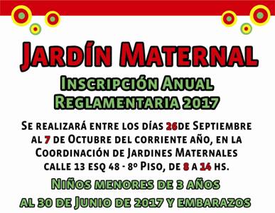 Jardín Maternal. Inscripción anual reglamentaria 2017