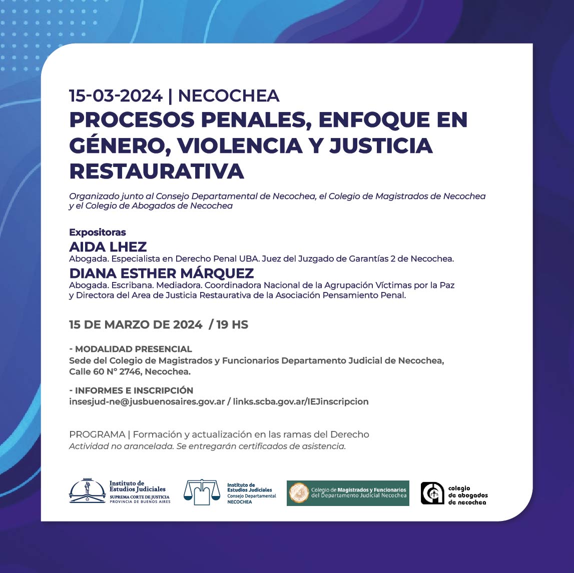15-03-2024 | NECOCHEA - Procesos penales, enfoque en género, violencia y Justicia Restaurativa